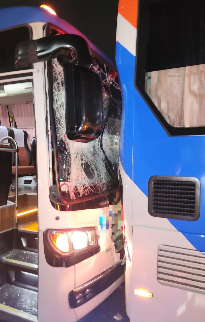 사고는 1차로 정체로 서행하던 고속버스 3대와 승합차 1대 등 4대가 추돌한 것으로 전해졌다.